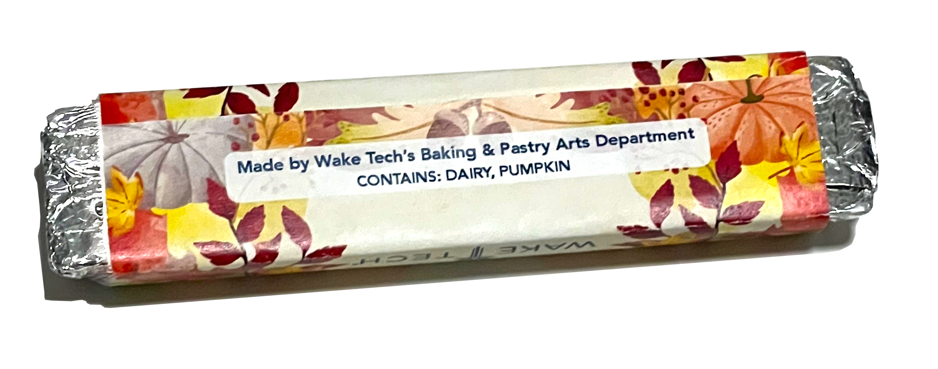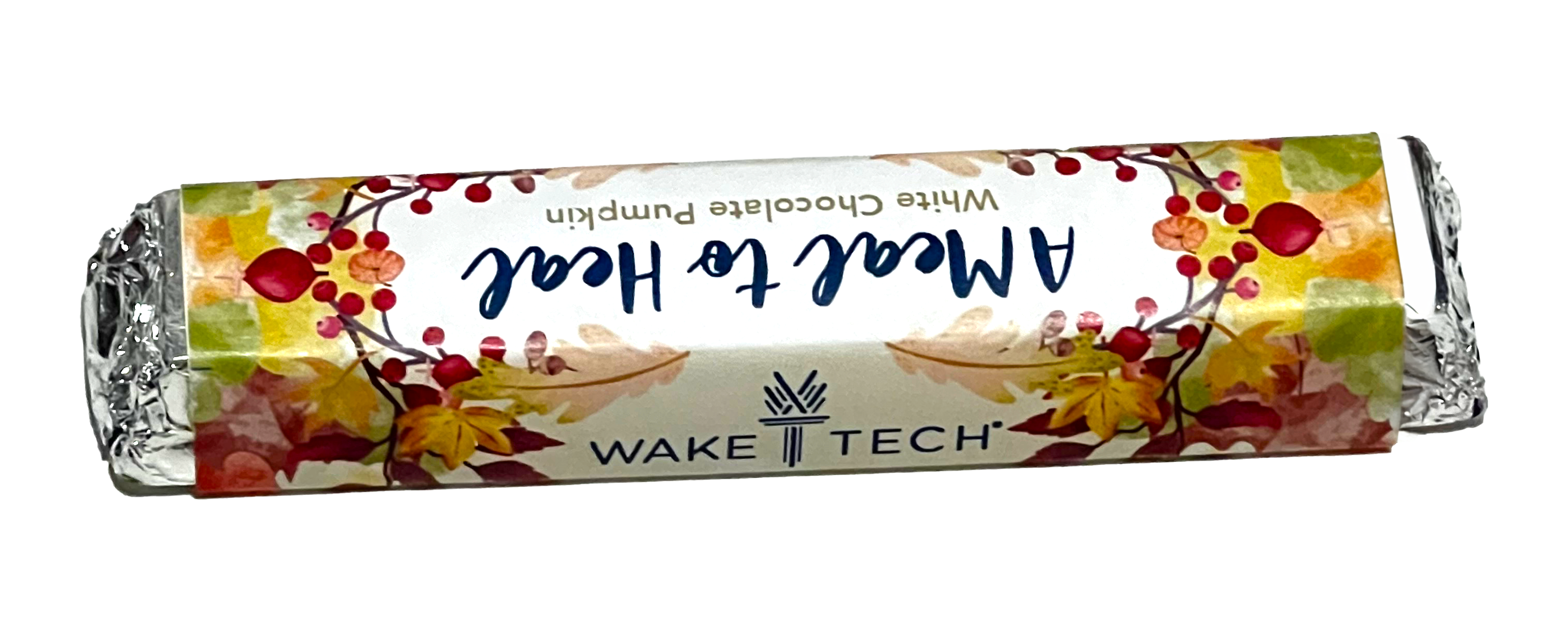This candy wrapper was designed for a fundraiser that Wake Tech hosted to raise money for western North Carolinians affected by hurricane Helene. The event provided food and dessert by the Culinary and Baking & Pastry Arts students.